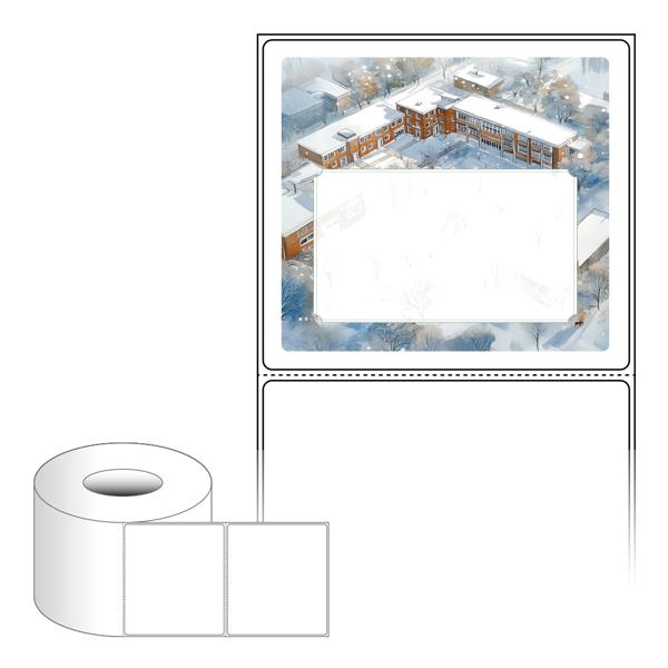 출력용 롤타입 스티커 디자인 라벨지, 규격코드: RL10090, 디자인코드: DA1535(겨울방학 학교에서 러브레터), 100 x 90.133 (mm) , 지관: 75mm