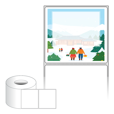 출력용 롤타입 스티커 디자인 라벨지, 규격코드: RL10090, 디자인코드: DA1569(설레는 설날의 아침), 100 x 90.133 (mm) , 지관: 75mm