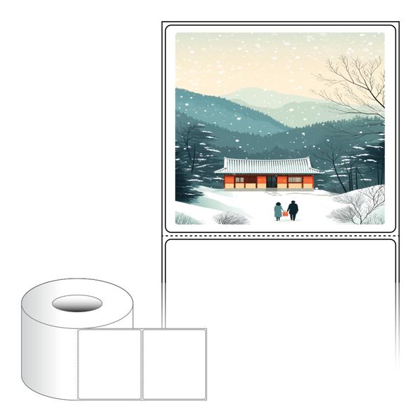출력용 롤타입 스티커 디자인 라벨지, 규격코드: RL10090, 디자인코드: DA1577(귀향, 눈내리는 설날), 100 x 90.133 (mm) , 지관: 75mm