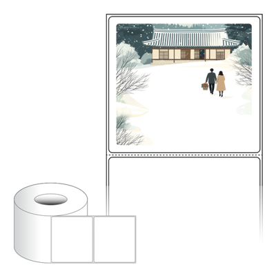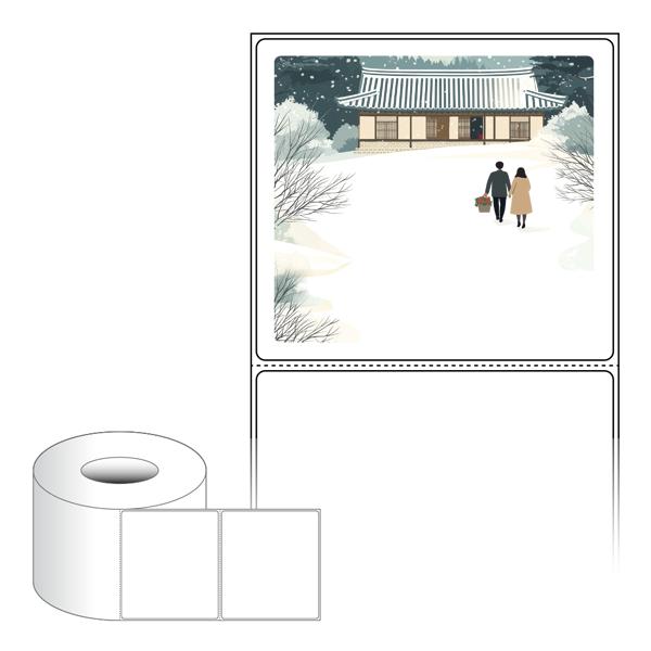 출력용 롤타입 스티커 디자인 라벨지, 규격코드: RL10090, 디자인코드: DA1580(눈내린 귀향의 따뜻한 길), 100 x 90.133 (mm) , 지관: 75mm
