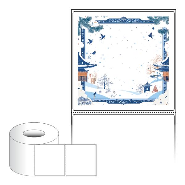 출력용 롤타입 스티커 디자인 라벨지, 규격코드: RL10098, 디자인코드: DA1514(겨울 프레임, 설날), 100 x 98 (mm) , 지관: 75mm