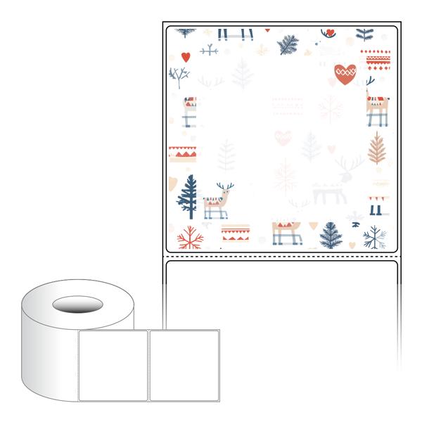 출력용 롤타입 스티커 디자인 라벨지, 규격코드: RL10098, 디자인코드: DA1526(겨울숲 여행 함께해요), 100 x 98 (mm) , 지관: 75mm