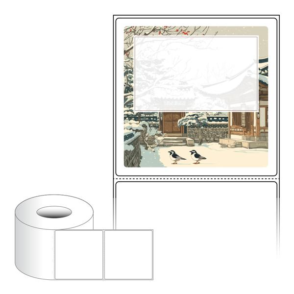 출력용 롤타입 스티커 디자인 라벨지, 규격코드: RL10098, 디자인코드: DA1546(눈내린 설날 아침), 100 x 98 (mm) , 지관: 75mm