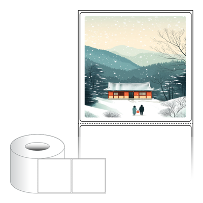 출력용 롤타입 스티커 디자인 라벨지, 규격코드: RL10098, 디자인코드: DA1577(귀향, 눈내리는 설날), 100 x 98 (mm) , 지관: 75mm