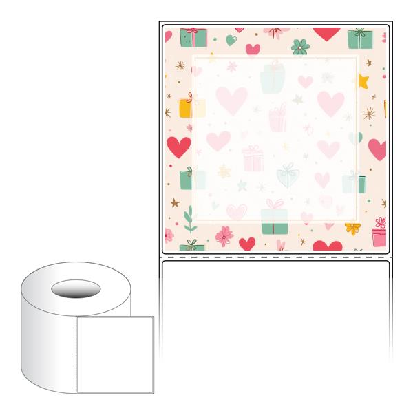 출력용 롤타입 스티커 디자인 라벨지, 규격코드: RL110111, 디자인코드: DA1393(선물 하트 포장지), 110 x 111 (mm) , 지관: 75mm