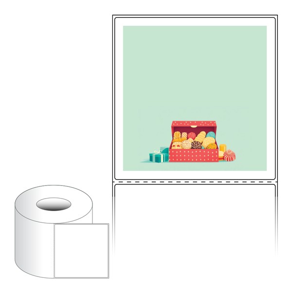 출력용 롤타입 스티커 디자인 라벨지, 규격코드: RL110111, 디자인코드: DA1478(크리스마스 아침에 선물을 받다.), 110 x 111 (mm) , 지관: 75mm