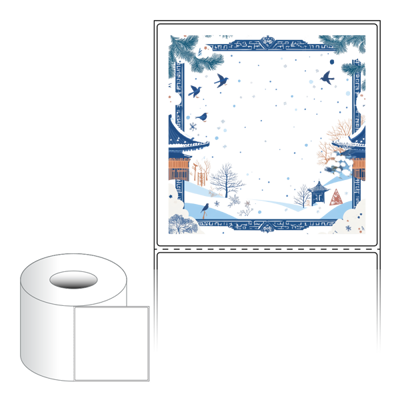 출력용 롤타입 스티커 디자인 라벨지, 규격코드: RL110111, 디자인코드: DA1514(겨울 프레임, 설날), 110 x 111 (mm) , 지관: 75mm