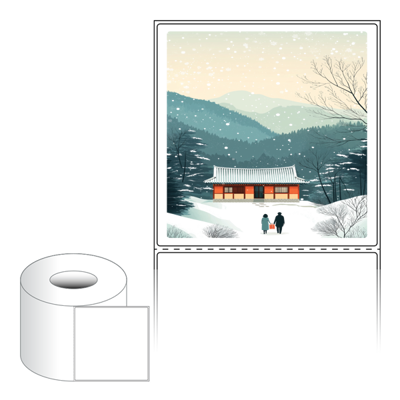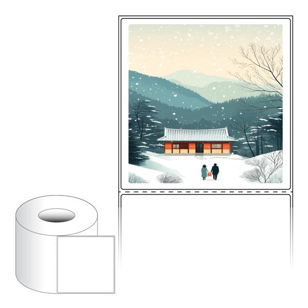 출력용 롤타입 스티커 디자인 라벨지, 규격코드: RL110111, 디자인코드: DA1577(귀향, 눈내리는 설날), 110 x 111 (mm) , 지관: 75mm