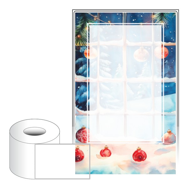 출력용 롤타입 스티커 디자인 라벨지, 규격코드: RL110175, 디자인코드: DA1467(함께해요 눈내리는 성탄의 밤), 110 x 174.8 (mm) , 지관: 75mm