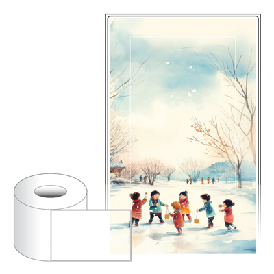 출력용 롤타입 스티커 디자인 라벨지, 규격코드: RL110175, 디자인코드: DA1523(즐거운 겨울날의 한장면), 110 x 174.8 (mm) , 지관: 75mm