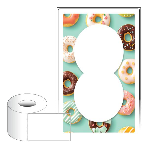 텍스트, 이미지, 도형, 바코드 등을 쉽게 출력 할 수 있으며 엑셀파일 등의 연동도 가능합니다. 라벨 모양대로 이미 칼선이 있기 때문에 출력 후 바로 떼어서 사용 하시면 됩니다.