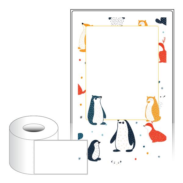 출력용 롤타입 스티커 디자인 라벨지, 규격코드: RL110175, 디자인코드: DA1564(겨울 숲 동물들의 메세지), 110 x 174.8 (mm) , 지관: 75mm