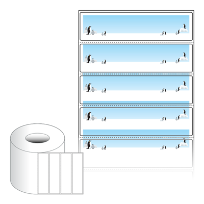 출력용 롤타입 스티커 디자인 라벨지, 규격코드: RL12030, 디자인코드: DA1817(펭귄님들의 하루), 120 x 30 (mm) , 지관: 75mm