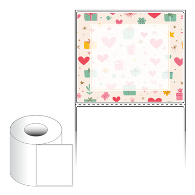 출력용 롤타입 스티커 디자인 라벨지, 규격코드: RL130110, 디자인코드: DA1393(선물 하트 포장지), 130 x 110 (mm) , 지관: 75mm