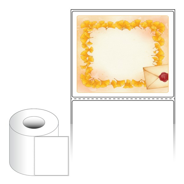 출력용 롤타입 스티커 디자인 라벨지, 규격코드: RL130110, 디자인코드: DA1426(은행잎 편지), 130 x 110 (mm) , 지관: 75mm