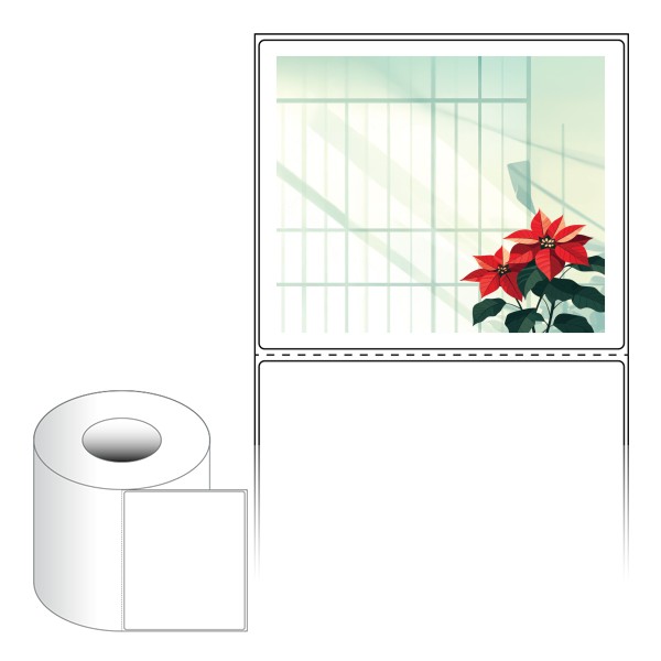 출력용 롤타입 스티커 디자인 라벨지, 규격코드: RL130110, 디자인코드: DA1477(포인세치아와 함께한 겨울), 130 x 110 (mm) , 지관: 75mm