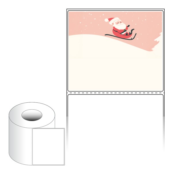 출력용 롤타입 스티커 디자인 라벨지, 규격코드: RL130110, 디자인코드: DA1482(산타 신난다), 130 x 110 (mm) , 지관: 75mm