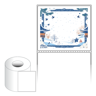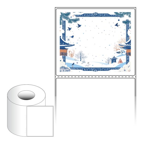 출력용 롤타입 스티커 디자인 라벨지, 규격코드: RL130110, 디자인코드: DA1514(겨울 프레임, 설날), 130 x 110 (mm) , 지관: 75mm