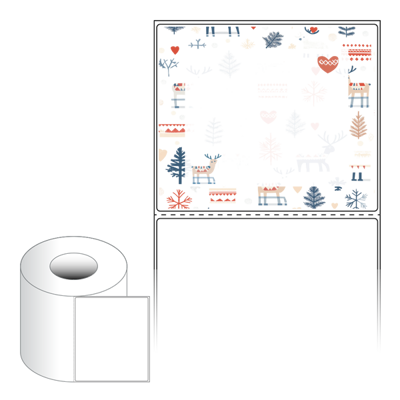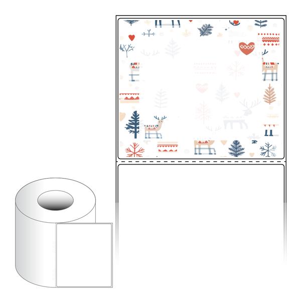 출력용 롤타입 스티커 디자인 라벨지, 규격코드: RL130110, 디자인코드: DA1526(겨울숲 여행 함께해요), 130 x 110 (mm) , 지관: 75mm