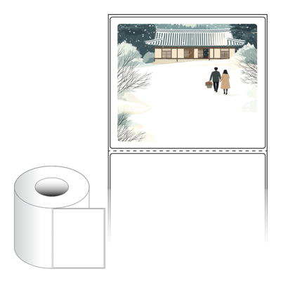 출력용 롤타입 스티커 디자인 라벨지, 규격코드: RL130110, 디자인코드: DA1580(눈내린 귀향의 따뜻한 길), 130 x 110 (mm) , 지관: 75mm