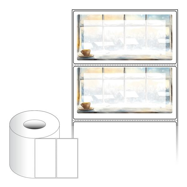 출력용 롤타입 스티커 디자인 라벨지, 규격코드: RL13067, 디자인코드: DA1510(겨울창가에서1), 130 x 66.5 (mm) , 지관: 75mm