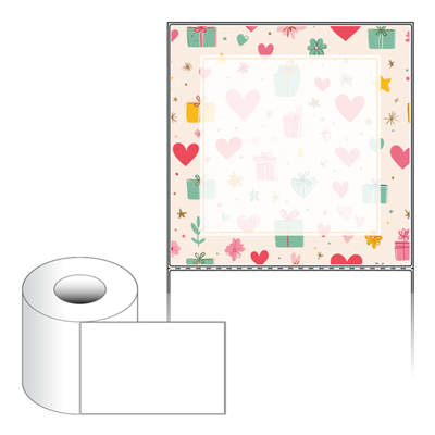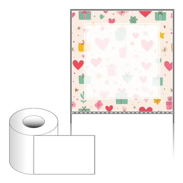 출력용 롤타입 스티커 디자인 라벨지, 규격코드: RL200200, 디자인코드: DA1393(선물 하트 포장지), 200 x 200 (mm) , 지관: 75mm
