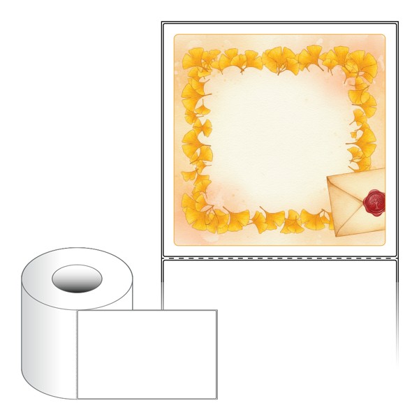 출력용 롤타입 스티커 디자인 라벨지, 규격코드: RL200200, 디자인코드: DA1426(은행잎 편지), 200 x 200 (mm) , 지관: 75mm
