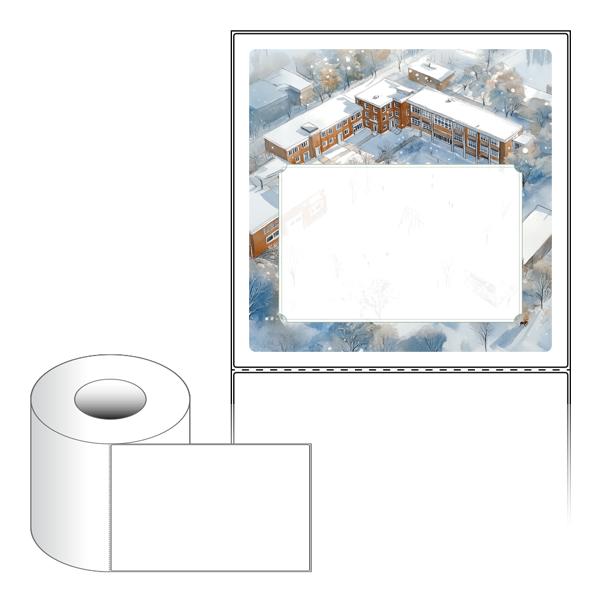 출력용 롤타입 스티커 디자인 라벨지, 규격코드: RL200200, 디자인코드: DA1535(겨울방학 학교에서 러브레터), 200 x 200 (mm) , 지관: 75mm