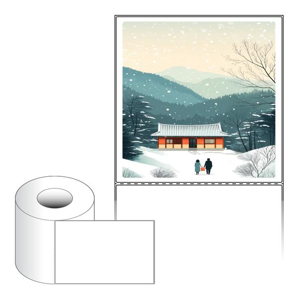 출력용 롤타입 스티커 디자인 라벨지, 규격코드: RL200200, 디자인코드: DA1577(귀향, 눈내리는 설날), 200 x 200 (mm) , 지관: 75mm