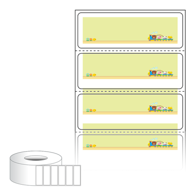 출력용 롤타입 스티커 디자인 라벨지, 규격코드: RL6020, 디자인코드: DA1802(기차놀이), 60 x 20.283 (mm) , 지관: 75mm