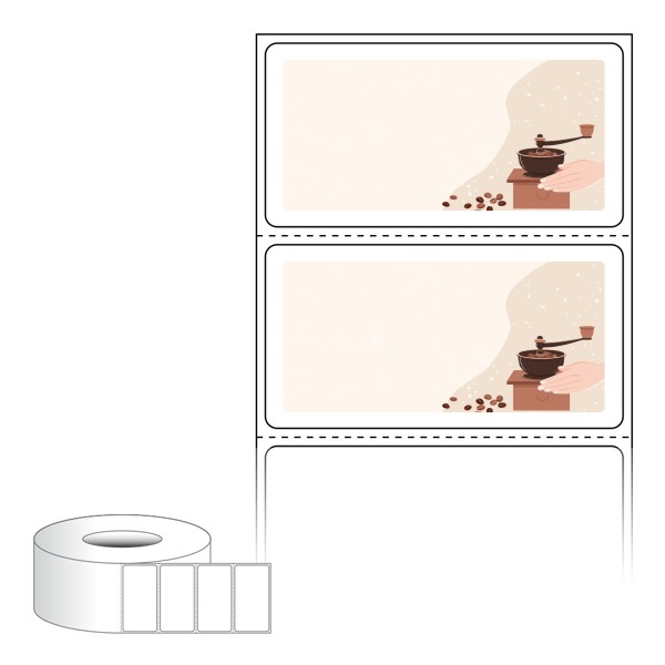 출력용 롤타입 스티커 디자인 라벨지, 규격코드: RL6031, 디자인코드: DA1412(감사의 커피한잔), 60 x 30.867 (mm) , 지관: 75mm