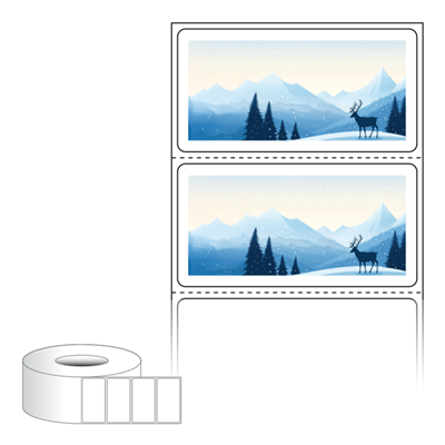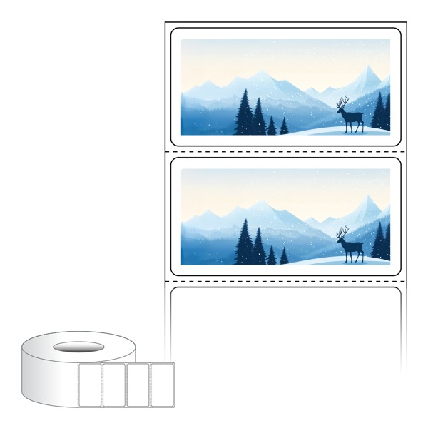 출력용 롤타입 스티커 디자인 라벨지, 규격코드: RL6031, 디자인코드: DA1473(새벽의 겨울숲, 힐링의 시간), 60 x 30.867 (mm) , 지관: 75mm
