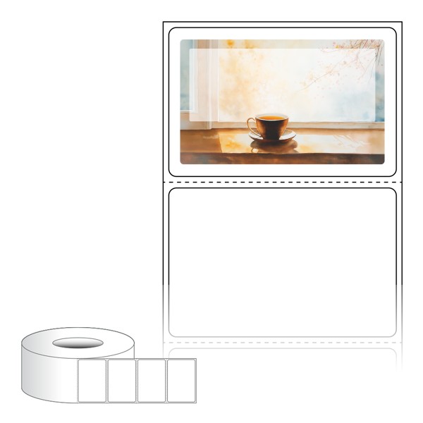 출력용 롤타입 스티커 디자인 라벨지, 규격코드: RL6039, 디자인코드: DA1425(가을날의 카페 창가에서), 60 x 39.3 (mm) , 지관: 75mm