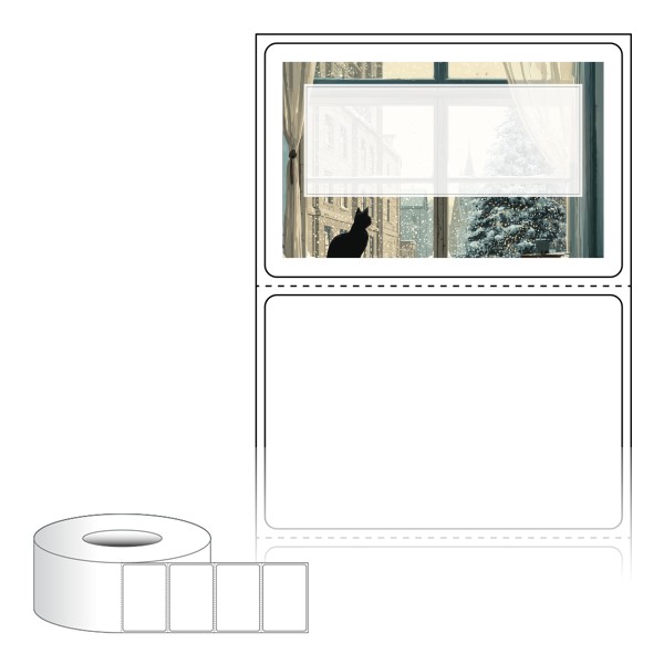 출력용 롤타입 스티커 디자인 라벨지, 규격코드: RL6039, 디자인코드: DA1494(오후엔 눈 그리고, 고양이), 60 x 39.3 (mm) , 지관: 75mm