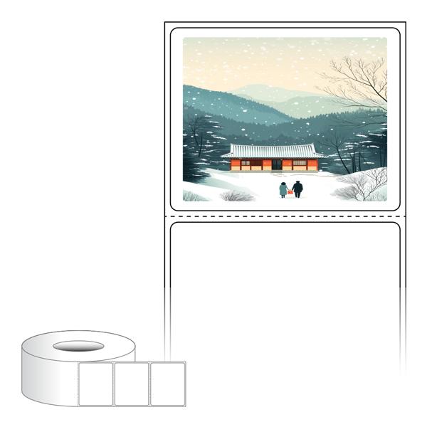출력용 롤타입 스티커 디자인 라벨지, 규격코드: RL6048, 디자인코드: DA1577(귀향, 눈내리는 설날), 60 x 47.8 (mm) , 지관: 75mm