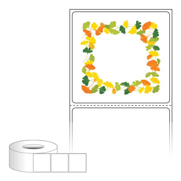 출력용 롤타입 스티커 디자인 라벨지, 규격코드: RL6056, 디자인코드: DA1402(은행잎 프레임), 60 x 56.267 (mm) , 지관: 75mm