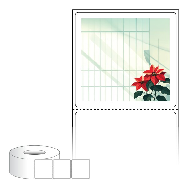 출력용 롤타입 스티커 디자인 라벨지, 규격코드: RL6056, 디자인코드: DA1477(포인세치아와 함께한 겨울), 60 x 56.267 (mm) , 지관: 75mm