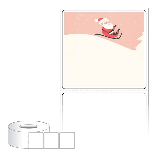 출력용 롤타입 스티커 디자인 라벨지, 규격코드: RL6056, 디자인코드: DA1482(산타 신난다), 60 x 56.267 (mm) , 지관: 75mm