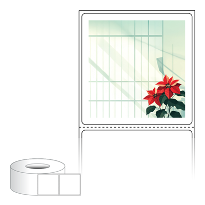 출력용 롤타입 스티커 디자인 라벨지, 규격코드: RL6061, 디자인코드: DA1477(포인세치아와 함께한 겨울), 60 x 60.5 (mm) , 지관: 75mm