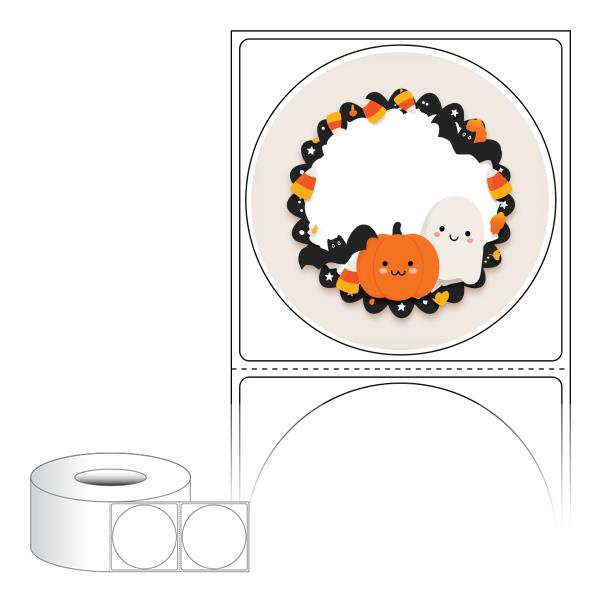 출력용 롤타입 스티커 디자인 라벨지, 규격코드: RL6464, 디자인코드: DA1378(해피할로윈(feat.마녀)), Φ64 (mm) 원형 , 지관: 75mm