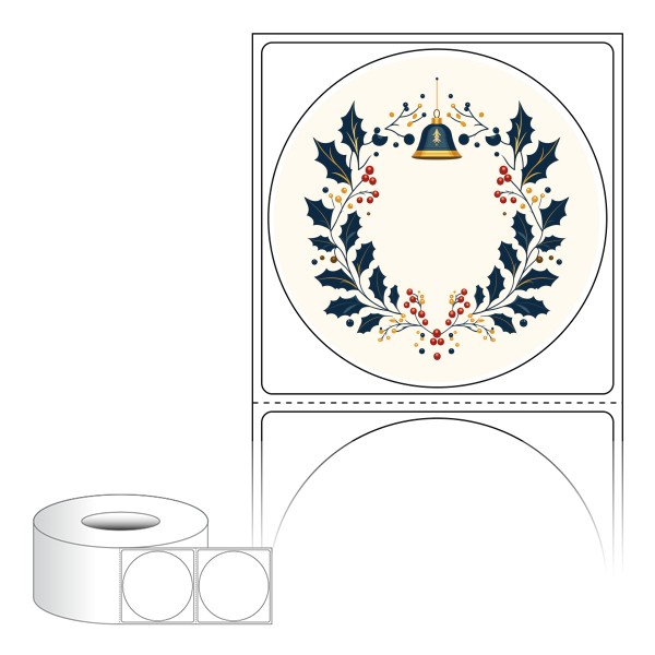 출력용 롤타입 스티커 디자인 라벨지, 규격코드: RL6464, 디자인코드: DA1484(메리크리스마스), Φ64 (mm) 원형 , 지관: 75mm