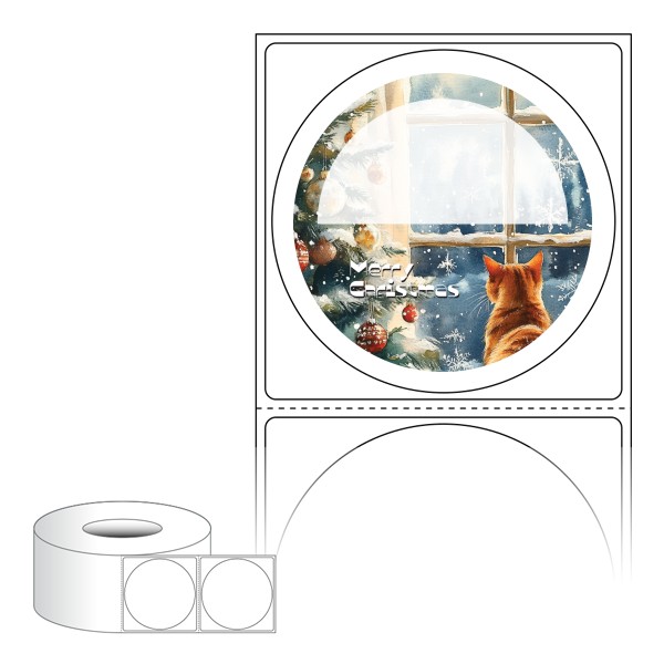 출력용 롤타입 스티커 디자인 라벨지, 규격코드: RL6464, 디자인코드: DA1496(메리크리스마스냥!), Φ64 (mm) 원형 , 지관: 75mm