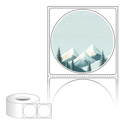 출력용 롤타입 스티커 디자인 라벨지, 규격코드: RL6464, 디자인코드: DA1583(겨울 메세지), Φ64 (mm) 원형 , 지관: 75mm