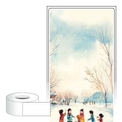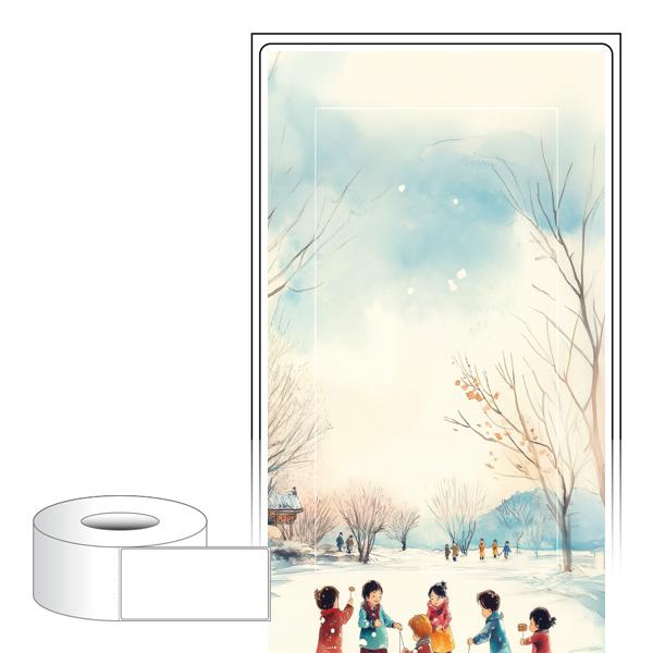 출력용 롤타입 스티커 디자인 라벨지, 규격코드: RL65136, 디자인코드: DA1523(즐거운 겨울날의 한장면), 65 x 136 (mm) , 지관: 75mm