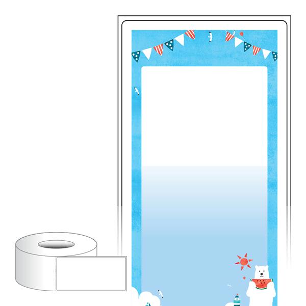 출력용 롤타입 스티커 디자인 라벨지, 규격코드: RL65136, 디자인코드: DA1775(한여름, 북금곰 그리고 수박), 65 x 136 (mm) , 지관: 75mm