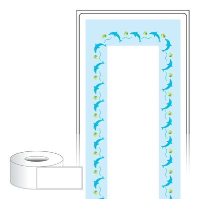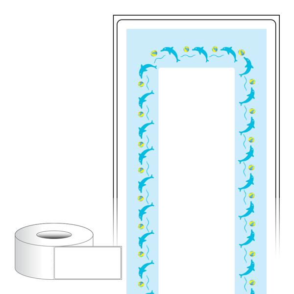 출력용 롤타입 스티커 디자인 라벨지, 규격코드: RL65136, 디자인코드: DA1823(돌고래 쇼타임), 65 x 136 (mm) , 지관: 75mm