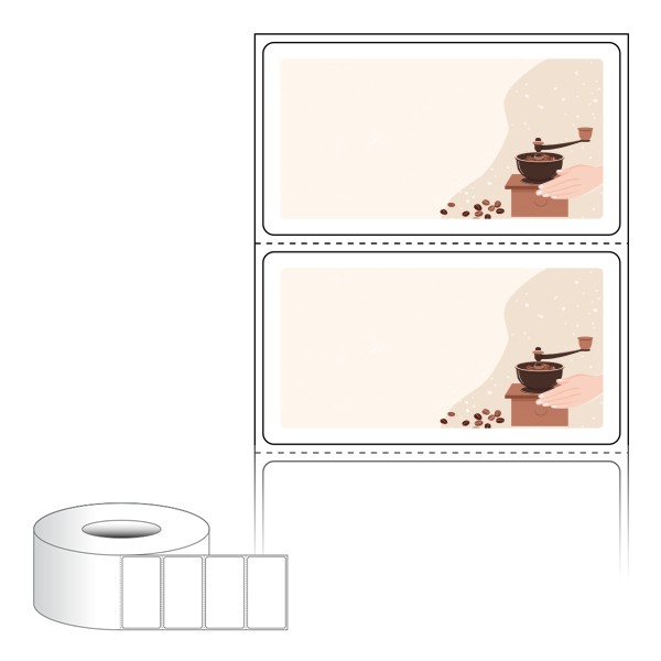 출력용 롤타입 스티커 디자인 라벨지, 규격코드: RL6535, 디자인코드: DA1412(감사의 커피한잔), 65 x 35 (mm) , 지관: 75mm