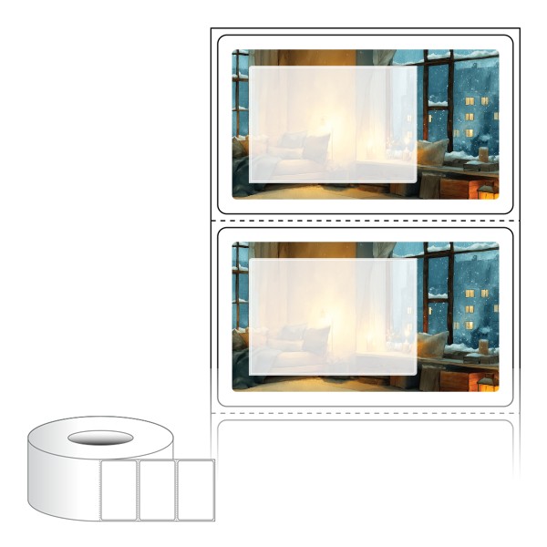 출력용 롤타입 스티커 디자인 라벨지, 규격코드: RL6539, 디자인코드: DA1461(아늑한 실내, 겨울의 창가에서), 65 x 39.333 (mm) , 지관: 75mm