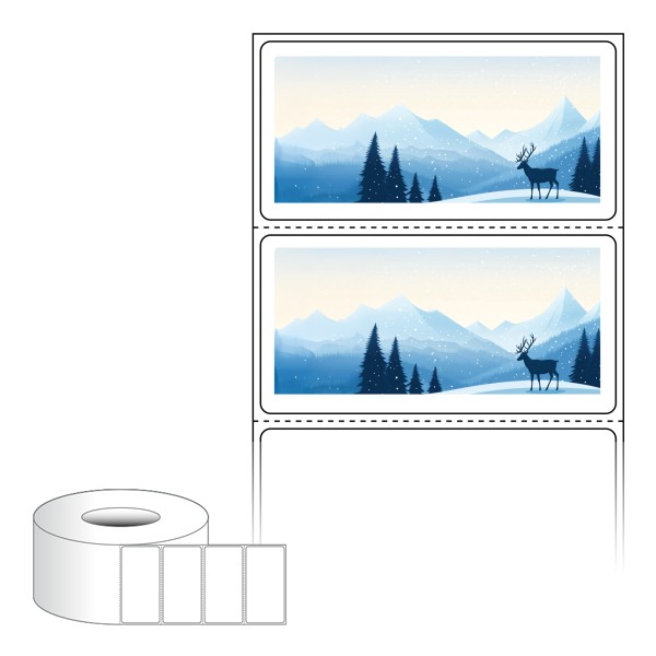 출력용 롤타입 스티커 디자인 라벨지, 규격코드: RL7035, 디자인코드: DA1473(새벽의 겨울숲, 힐링의 시간), 70 x 35.1 (mm) , 지관: 75mm