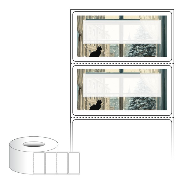 출력용 롤타입 스티커 디자인 라벨지, 규격코드: RL7035, 디자인코드: DA1494(오후엔 눈 그리고, 고양이), 70 x 35.1 (mm) , 지관: 75mm